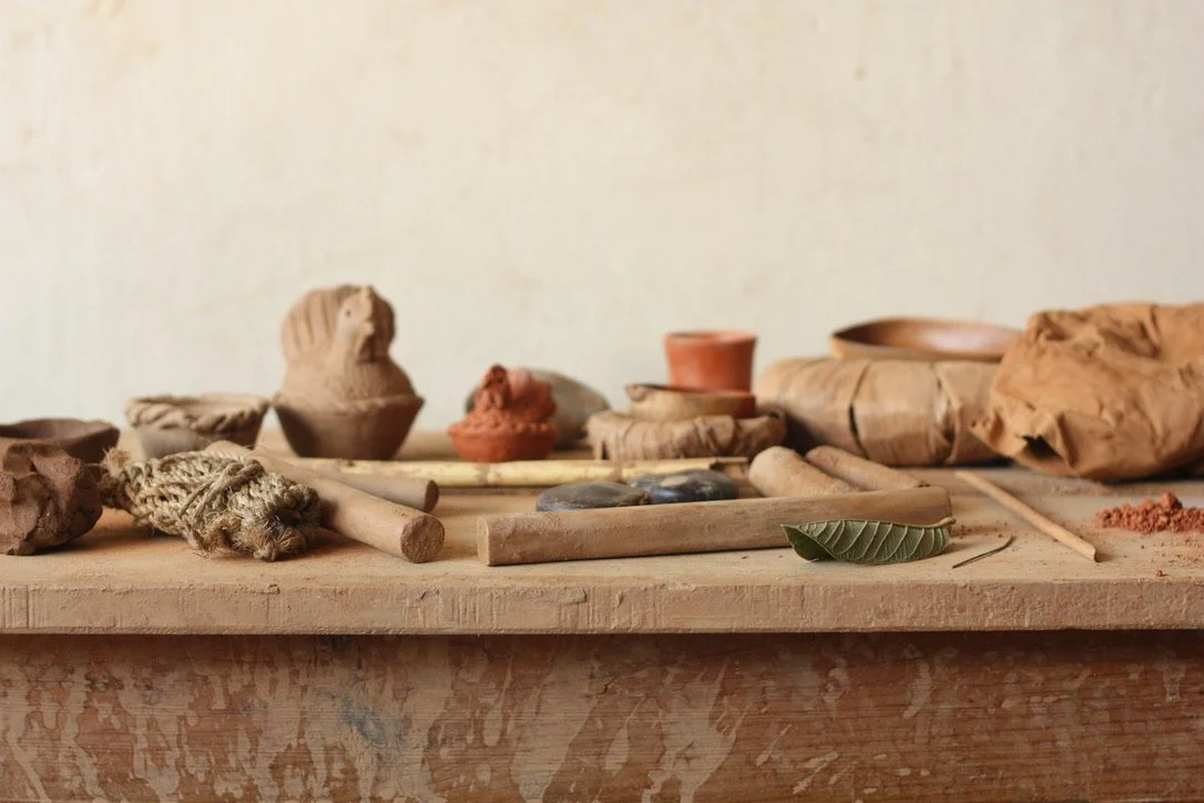 Cada chango es modelado a mano y decorado con engobes naturales de la región, revelando tonalidades que van del terracota intenso a los matices tierra.