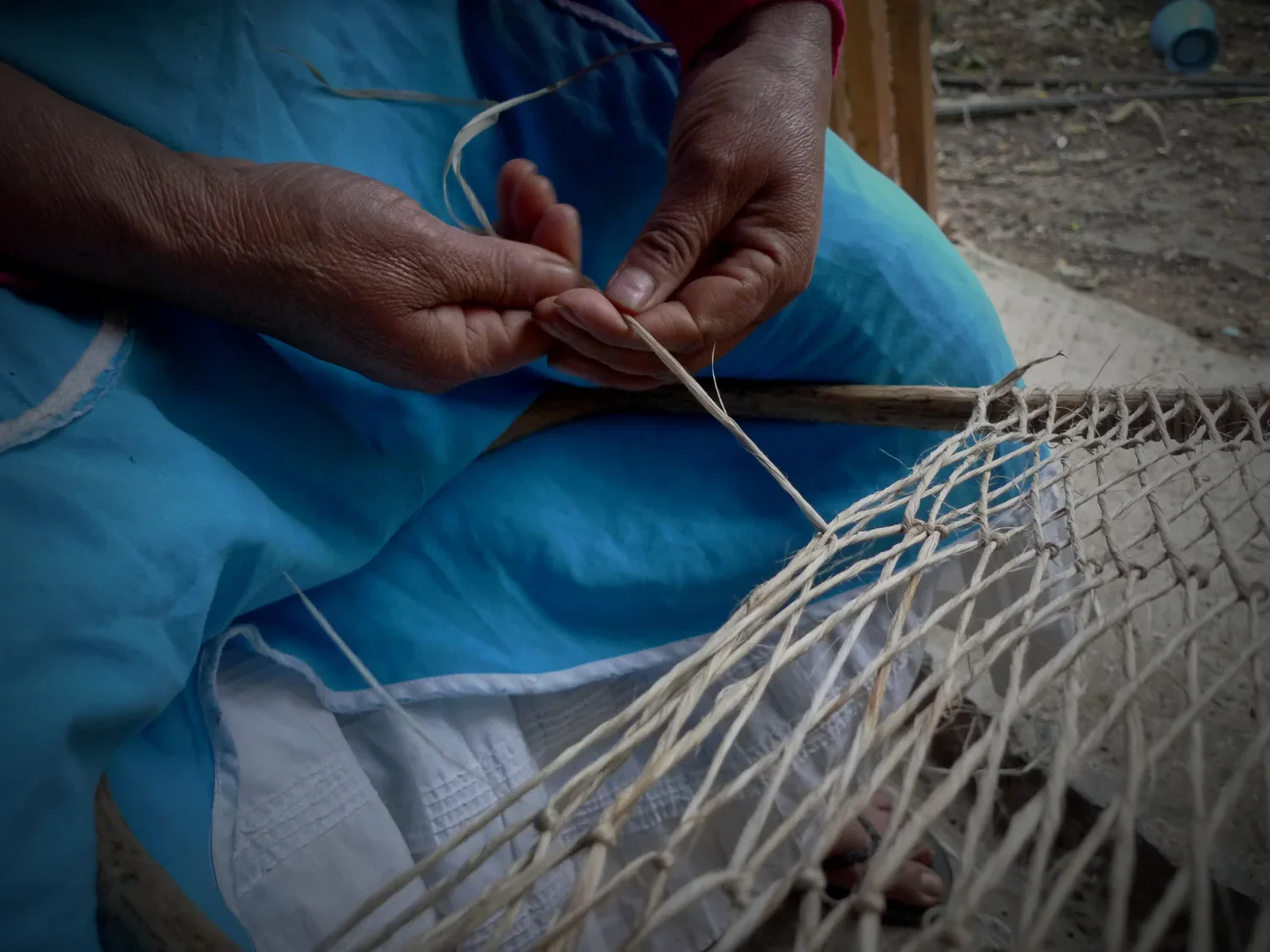 El jonote, cuya corteza fibrosa ha sido aprovechada por generaciones, se recolecta de manera sostenible, permitiendo que los árboles sigan creciendo y manteniendo el equilibrio con la naturaleza. Tras un secado al aire libre, las fibras se tuercen manualmente para transformarse en hilos firmes, ideales para la creación de canastos, hueveras y otros objetos de uso cotidiano.